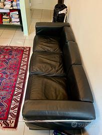 Arredo iconico in puro stile Bauhaus, il celebre divano LC2 si caratterizza per il design minimalista e funzionale. Disegnato nel 1928 da Pierre Jeanneret, Charlotte Perriand e Le Corbusier, il divano iconico a 3 posti presenta una struttura in metallo cromato lucido e rivestimento in pelle nera. Prodotto da Cassina, si tratta di un un divano senza tempo comodo e di facile ambientazione.