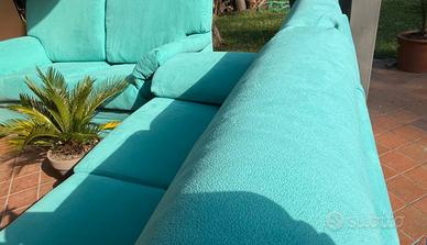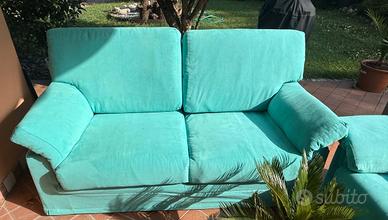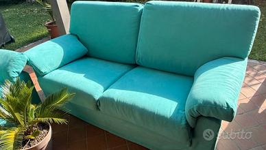 Coppia di divani a 3 posti in Alcantara verde acqua, usati pochissimo in quanto collocati in taverna e mantenuti in condizioni eccellenti. - Rivestimento in Alcantara, elegante, resistente e facile da pulire - Struttura robusta in legno, realizzazione artigianale made in Italy - Sedute praticamente nuove, imbottiture perfettamente sostenute - Materiali e finiture di alta qualità italiana - Lavati e igienizzati, pronti per essere utilizzati subito La vendita è dovuta a un cambio di arredamento. Si tratta di divani spaziosi e molto comodi, da provare. Visione e prova senza impegno Ulteriori foto e misure disponibili su richiesta Possibilità di vendita in coppia (prezzo trattabile) o singolarmente €260,00 cadauno No perditempo Ritiro a carico dell’acquirente.