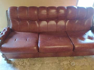 Divano 3 posti in ecopelle e struttura in legno. Usato, con due sedute senza bottoni ma in generale in buone condizioni. prezzo trattabile