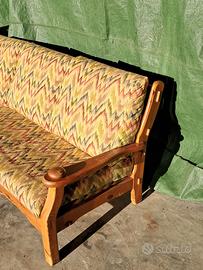 Divano 3 posti in legno massello con cuscini sfoderabili. Misure 185x85. No spedizione.