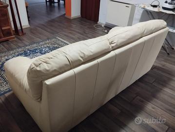 Vendo divano 3 posti in pelle color crema, molto comodo e spazioso. Struttura solida, sedute ampie e ben imbottite, schienale alto con supporto lombare. Ideale per soggiorno o taverna. Il divano è in buone condizioni generali, presenta normali segni di utilizzo ma è ben tenuto (vedi foto).