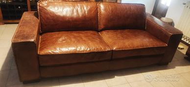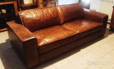 Vendo bellissimo divano a 3 posti in vera pelle marrone, modello Colonel di Maisons du Monde, il costo del nuovo è circa € 2.200
