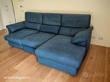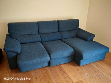 Divano blu Poltrone Sofà 3 posti, tessuto sfoderabile con penisola a sinistra in ottime condizioni. 2 sedute scorrevoli e penisola, comodo e spazioso. Il divano è usato ma in ottime condizioni, sempre tenuto con cura, senza difetti strutturali. Sedute ampie e confortevoli, perfette per relax e momenti in famiglia. ✔ Penisola comoda, sedute scorrevoli e poggia testa regolabili ✔ Struttura solida e stabile ✔ Tessuto lavabile in ottimo stato ✔ Cuscini morbidi e ben mantenuti Misure: Lunghezza max:260 cm Profondità max:160 cm Disponibile per visione. Ritiro a carico dell’acquirente.