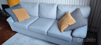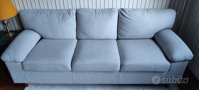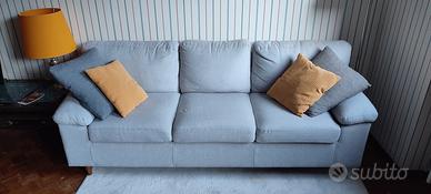 Vendo divano 3 posti in tessuto grigio chiaro, comodo e in perfette condizioni.