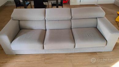 vendo divano in tessuto completamente sfoderabile con poggiatesta reclinabili a 3 ampie sedute. misure 250x100cm. prezzo 400€