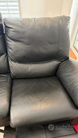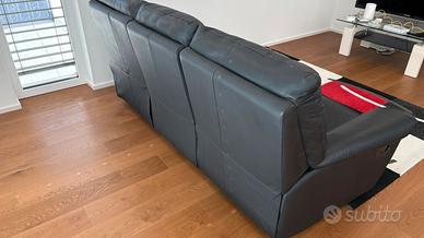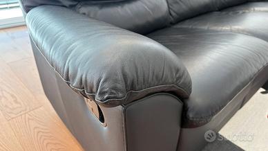 Divano 3 posti in vera pelle nera con due sedute reclinabili, in buone condizioni.
