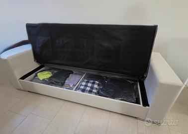 Vendo divano 3 posti trasformabile in letto matrimoniale, con pratico vano contenitore.