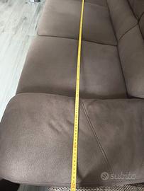 Bellissimo divano in fibra, simile scamosciato, dal particolare colore marrone/grigio. Lavabile semplicemente con un panno umido. Comodo, ben imbottito. Poco utilizzato, vendo per necessità di divano letto. Da ritirare in loco, misure visibili in fotografia.