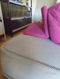 Vendo divano 3 posti in ottime condizioni marca Roche Bobois. Colore grigio chiaro e cuscini regolabili in stoffa di Missoni. Dimensioni 204 cm lunghezza per 103 di profondita'.