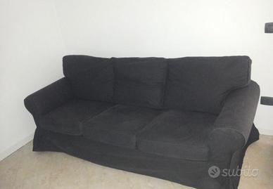 Divano 3 posti Ektorp Ikea (NO LETTO) con fodera grigio antracite/nero, completamente sfoderabile, come da foto. Il divano è sempre stato tenuto con cura e quasi sempre utilizzato un copridivano come da terza foto. Trasporto a carico dell'acquirente.