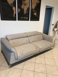 Vendo elegante divano 3 posti dal design moderno, colore beige/tortora, perfetto per arredamenti contemporanei. Il divano è rivestito in tessuto effetto velluto molto morbido al tatto, con finitura leggermente cangiante che dona un aspetto raffinato. Struttura solida e comoda, con sedute ampie e schienali imbottiti e pieghevoli Il rivestimento è appena stato cambiato quindi è nuovo. Vendo anche il secondo rivestimento da poter cambiare, grigio scuro. ✔ Condizioni: usato ma tenuto molto bene ✔ Seduta comoda e spaziosa ✔ Piedini in metallo dal design moderno ✔ Ideale per soggiorno, salotto o studio Dimensioni (circa): Lunghezza: ~200-220 cm Profondità: ~90 cm Sempre tenuto in ambiente pulito e non fumatori.