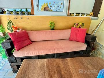 Vendo divano 3 posti, fai da te con bancali in legno. Compreso anche di cuscini.