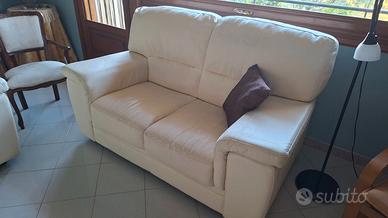 Due Divani in similpelle di colore bianco crema, 3 posti più 2 posti, in buone condizione fatta eccezione per 4-5 screpolature su due braccioli e due schienali (come da foto allegate), motivo per cui il prezzo è economico. Il ritiro è presso la sede in Fontanarosa(AV). Consiglio la visione degli stessi prima di eventuale acquisto. Recapito 339 7417908