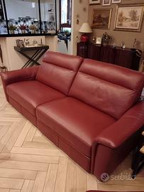 Divano a 3 posti in pelle primo fiore colore bordeaux marca Poltrone e Sofà, con motore elettrico per allungare la seduta e la spalliera.