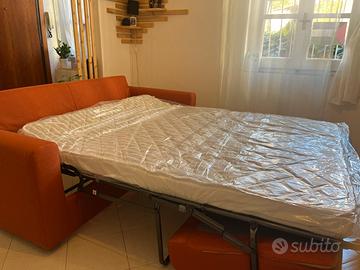 Divano letto in tessuto 3 posti, acquistato da poltrone e sofà. Modello Rosciano (colore camomilla mattone) Consegnato in data 7 aprile Nuovo, Mai usato, in negozio il prezzo di listino era di 1400 euro. Il materasso ancora imballato. Miaure 87x192x90
