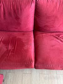 Divano a 3 posti + poggia piedi, sfoderabile con poggia testa in tela e scamosciato. Misure Profondità 90cm Larghezza 200cm Altezza 80cm