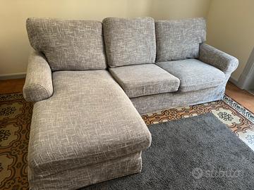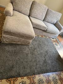 Causa trasloco vendo Divano 3 posti poltrone sofa con chaise longue, tessuto in ottime condizioni color grigio melange , sfoderabile, regalo inoltre con l’acquisto del divano un tappeto rettangolare grigio scuro . Le dimensioni del divano approssimativamente sono : lunghezza mt 2,20 circa larghezza per mt 1,50( chaise longue). Ritiro e trasporto a carico del compratore.