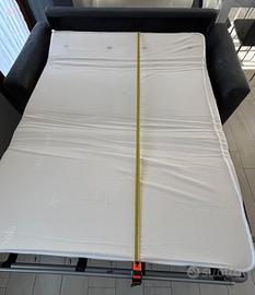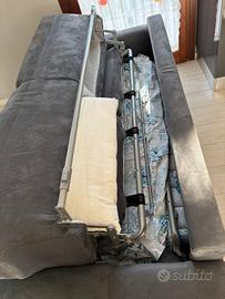 Vendo divano letto 2 posti PoltroneSofà, lunghezza totale 200cm, in tessuto lavabile, colore grigio. Sia le sedute che il letto sono in perfette condizioni, non presenta strappi o macchie, eccetto alcune sul materasso causate dalla struttura come è possibile verificare in foto. Letto usato pochissimo, vendo per cambio arredamento. Trasporto a carico dell'acquirente.