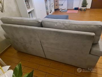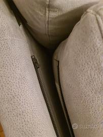 vendo divano 3 posti con pouf contenitore completamente sfoderabile e lavabile. unico difetto una cerniera rotta di uno dei due cuscini come da foto.