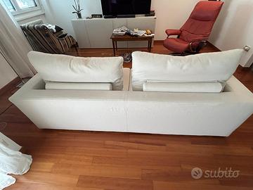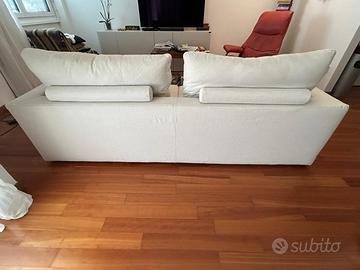 Vendo divano a tre posti saba, manifattura 100% italiana (allegato certificato). Seduta in memory foam, schienali imbottiti in piuma, tessuto cotone e lino prelavato quindi tutte la parti sono lavabili in lavatrice (completamente sfoderabile). Lo schienale puó assumere due diverse posizioni utilizzando il rotolo dietro ai cuscini. Acquistato nel 2021, usato poco, no bambini. Ritiro a mano a Sondrio