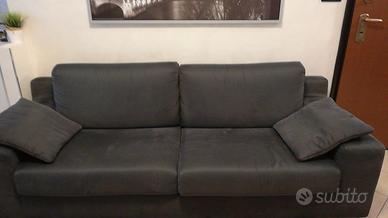 Divano lineare 3 posti Samoa. Completamente sfoderabile. Lunghezza 228x86 cm. Seduta 180cm Ben tenuto. La stoffa presenta un piccolo foro sul retro riparabile con colla per tessuti. Colore grigio scuro