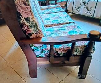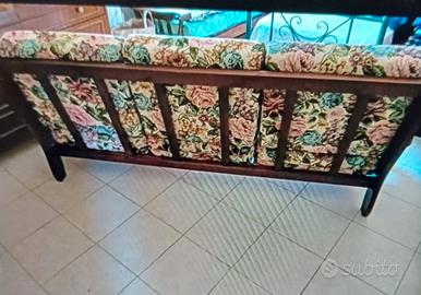 Vendo per inutilizzo divano in legno massiccio con cuscini in stampa floreale. Poche imperfezioni perché tenuto maniacalmente.