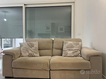 Divano 3 posti, completamente sfoderabile, e lavavile in lavatrice a 50 gradi, con due poggiapiedi estraibili. 2 posizioni: seduta standard e schienale reclinato con poggiapiedi aperto per un totale relax Dimensioni 210 larghezzax100profondita.