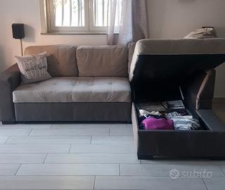 Divano 3 posti con penisola e cassetto contenitore grigio con letto estraibile prezzo tratt