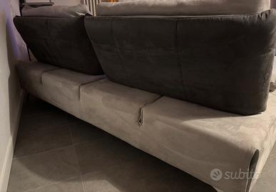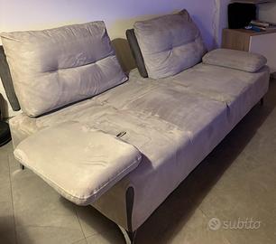 Divano 3 posti con schienale e hraccioli basculanti. Colore grigio chiaro e grigio scuro. Schienale molto bello, perfetto per essere a vista. Divano usato ma ben tenuto e in ottime condizioni. Lunghezza 203 cm Profondità 102 cm Altezza 89 cm Profondità seduta 57 cm