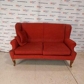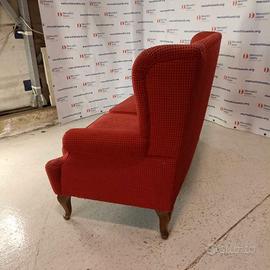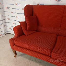 Divano 3 posti Vintage anni 60-70. Rivestimento in tessuto rosso con cuscini