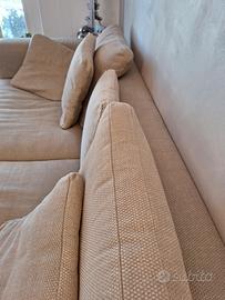 causa trasloco vendo divano molteni in tessuto color corda 2,40mt x 1mt con relativi cuscini in perfetto stato. usato sempre con copridivano. il colore é ancora originale e non ci sono segni di consumi sui cuscini.