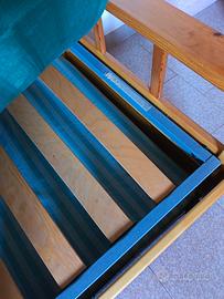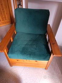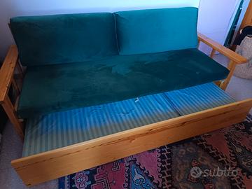 Vendesi prestigioso set da salotto in legno di pino massiccio, ideale per chi cerca la solidità del vero legno unita a un design senza tempo. Il set è perfetto per arredare case al mare o ambienti in stile scandinavo/boho-chic. tessuti sfoderabili appena rinnovati e mai usati colore verde bosco. misure 210x85 h75. 80x85 h75. trasformabile in letto matrimoniale o due letti singoli. escluse spese di trasporto.