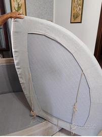 Vendo divano angolare più mezzaluna in buone condizioni con misure lunghezza 290 cm e larghezza 90 cm diagonale angolo 110 cm. Tutti i cuscini hanno la fodera su misura e sfoderabili.