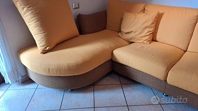 divano 4 posti con penisola struttura ottima misure : lunghezza 290 larghezza 90 larghezza penisola 170 staccabile la parte angolare, altezza 85. Doppio rivestimento . L' altro color bianco crema.