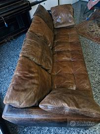 Vendo divano originale Maison du Monde in vera pelle marrone effetto vintage.