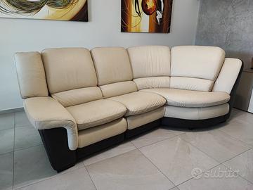 Splendido divano angolare Max Relax (Odissea) in pelle colore beige e marrone testa di moro. Presenta una apertura Relax elettrica. Inoltre è scomponibile in 3 pezzi.