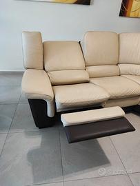 Design elegante e di grande comfort, la scelta perfetta per rilassarsi dopo una lunga giornata. Il meccanismo relax integrato migliora ulteriormente la comodità della seduta per intensi momenti rigeneranti e confortevoli. Il fusto del divano è realizzato in legno di abete stagionato per evitare possibili deformazioni della struttura nel tempo. Il rivestimento è realizzato in pelle color beige e marrone testa di moro. L'imbottitura è in poliuretano espanso ecologico a densità differenziata con una falda di dacron. Le reti sono realizzate in metallo elettrosaldato per garantire affidabilità e durevolezza nel tempo. Il materasso è esclusivamente lattice e poliuretano espanso per garantire il massimo comfort e la migliore resistenza.