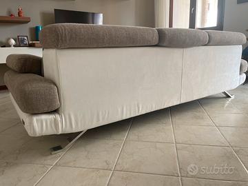 Divano 4 posti poltrone e sofà modello Gimigliano larghezza 247 profondita 113 altezza 97. Poggiatesta regolabili e braccioli laterali inclinabili. Piedini in metallo. Colori bianco e safari. Sfoderabile e lavabile.
