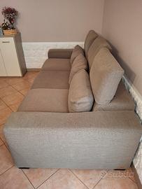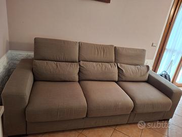 Vendo come da titolo divano 4 posti (3 ampie sedute), originale Poltronesofà, modello ISORELLA in tessuto, sedute e cuscini in poliuretano espanso, struttura portante in legno massello. DIMENSIONI cm 238x106x60 (altezza bracciolo da terra). Ampiezza sedute cm 192.