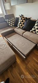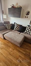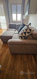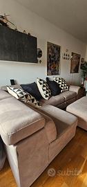 Divano Dondi Salotti Divano+pouff+cuscini Divano letto ad angolo 5 posti molto ampio, colore beige melange, simile ad un grigio. Maculato. Tessuto microfibra, pulibile con panno, ma separatamente vendo il suo prodotto sempre Dondi Salotti. Dimensioni divano 281×177×77 circa Dimensione pouff 107×70 circa 5 cuscini dimensione 60×60 Il divano ha 5 anni con letto estraibile (mai usato) poggia testa inclinabili e regolabi a piacimento, pouff contenitore. Vendo causa trasfimento in altra abitazione, divano tenuto sempre in modo maniacale, no bambini o altro. Prezzo leggermente trattabile. Il divano si trova al 4° piano con ascensore. No perditempo o richieste assurde.