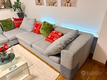 Divano 6 posti (3+3) + letto, struttura perfetta, ma sarebbe da rifoderare in quanto ho due gatti e gli angoli sono un pò rovinati, il divano misura 320 x 220 x 120, è separabile, di fatto sono due divani a L, 220x120 che compongono come in questo caso un divano solo, posso essere anche separati.
