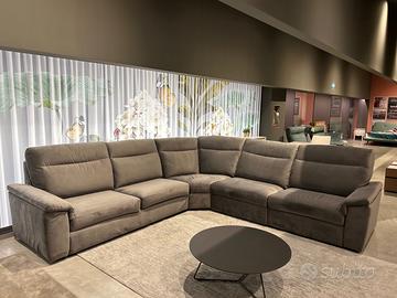 Vendo divano nuovo mai usato, esposto presso il salone in cui è stato acquistato, colore grigio, tessuto vellutino, anti macchia, due relax elettrici.