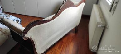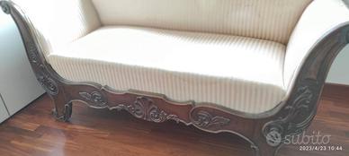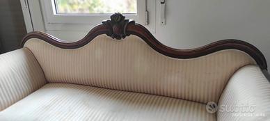 Divano in legno massiccio decorato, fine 800 primi 900, tessuto seduta un pò usurato ma strutturalmente perfetto.