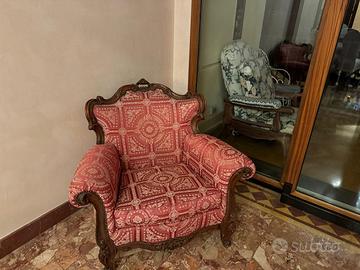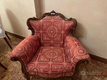 Divano classico primi del ‘900 in tessuto bordeaux damascato. Divano due posti e due poltrone. Solo ritiro