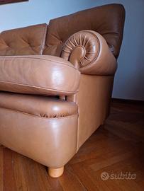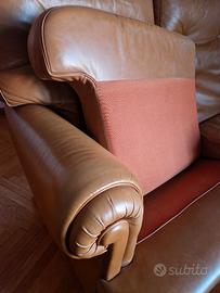 Vendo divano a 2 posti in vera pelle color cuoio, cuscini e schienali staccabili, telaio in legno completamente rivestito, misure largo 160cm, profondo 90 cm, alto 90 cm, in ottime condizioni senza tagli, visibile a Trieste