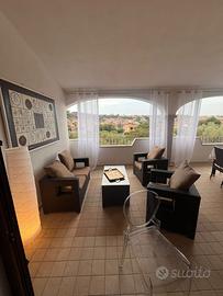 Divano a 2 posti marrone scuro con cuscini colore marrone chiaro