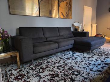 Divano di 3 posti con chaise longue in tessuto DIM e colore grafite.