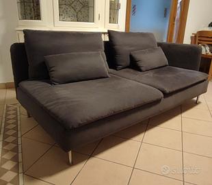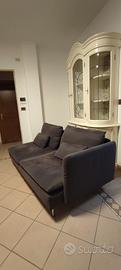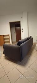 Divano a due piazze in tessuto nero con due cuscini abbinati, tutto in buonissime condizioni.