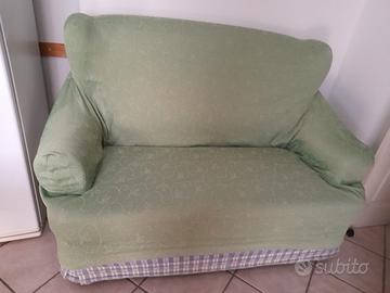 Vendo divano a due posti in foto. Acireale zona mare. Il divano è di colore blu e bianco a quadretti, i copridivani sono 2 intercambiabili: uno è verde e un altro è color zucca.