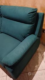 Divano a due posti comodo, come in foto semi-nuovo, copertura originale color turchese, sempre coperto, in casa secondaria in Pioppi, posto in salone ospiti.
